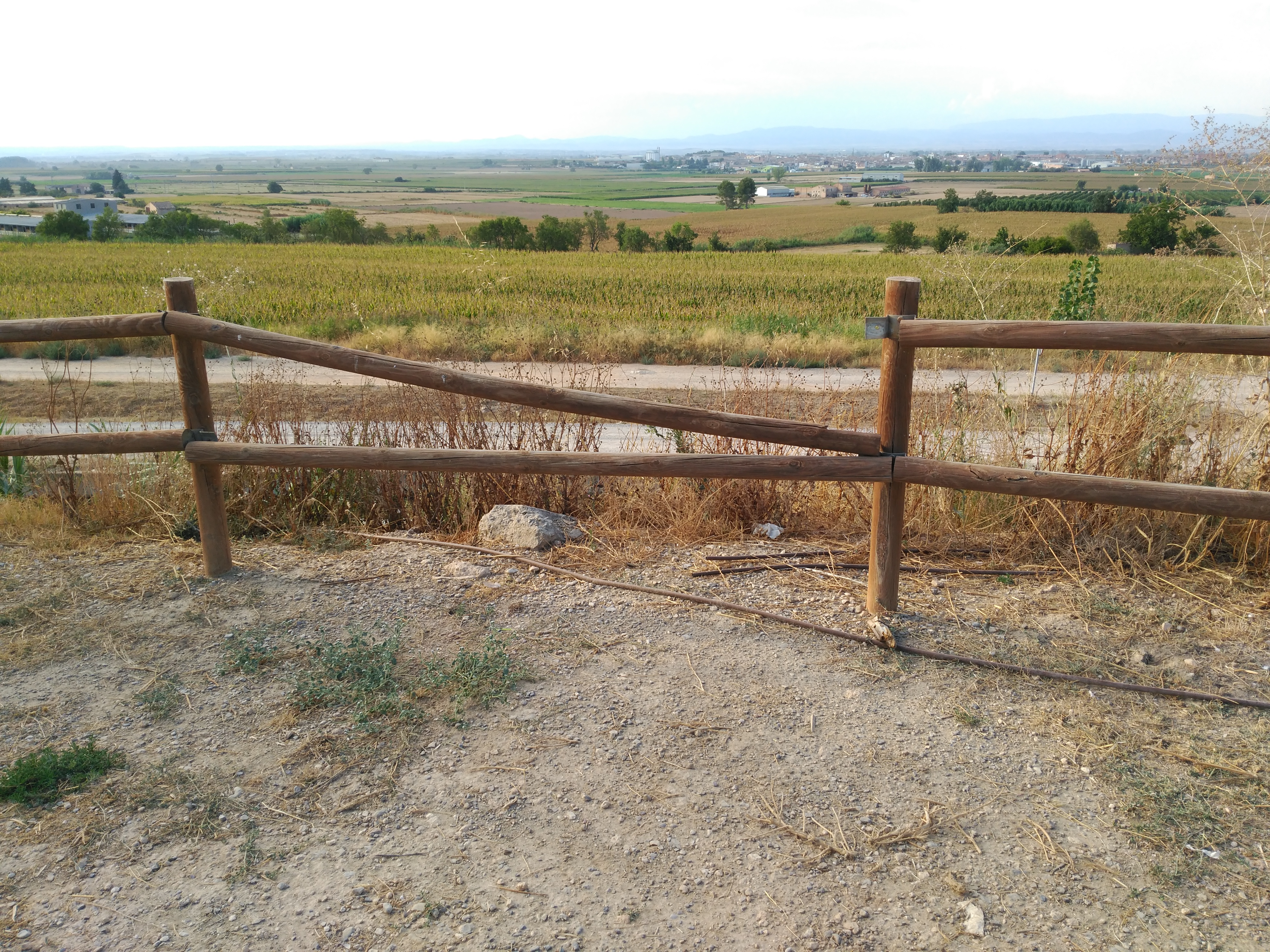 La tanca de fusta del mirador de la Pineda està trencada.