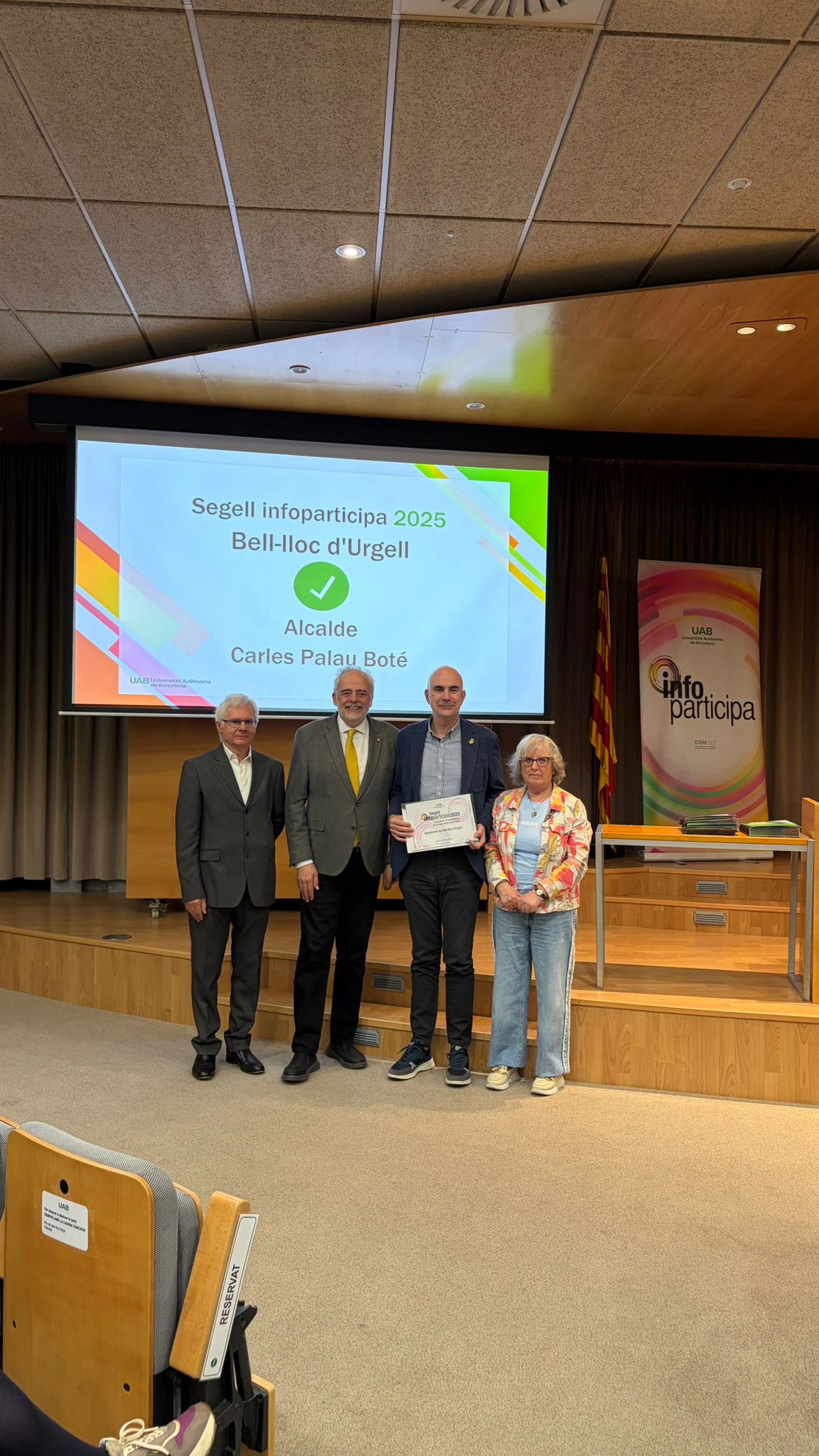 L’alcalde de Bell-lloc, Carles Palau, va recollir el guardó aquest passat dimarts 14 d'abril de 2026 a les 17 hores a la Sala d’Actes del Rectorat de la UAB i s’ha mostrat molt satisfet d'aquest èxit coral i que és mèrit de tots i totes però especialment dels treballadors i treballadores de l'ajuntament que són qui s'encarreguen de gestionar que es compleixi amb els requisits.