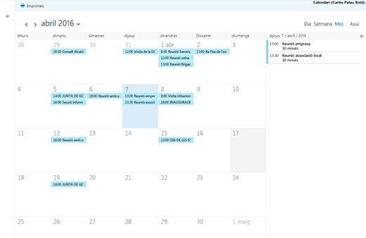 En aquesta agenda s’hi podrà trobar des de reunions amb diferents empreses, trobades amb les entitats del poble, actes organitzats per l’Ajuntament, actes en els que hi assisteix l’alcalde, visites institucionals...